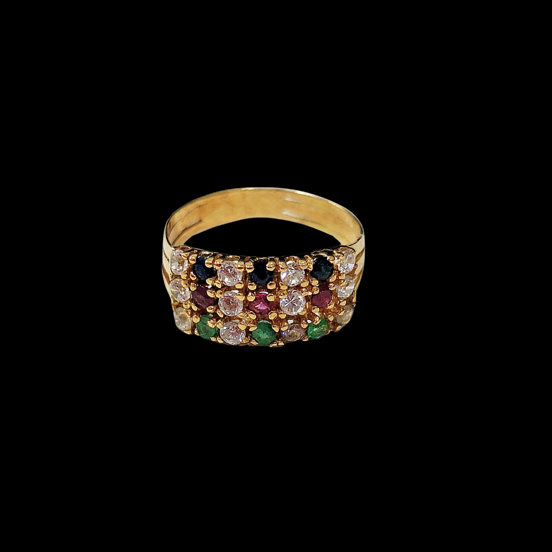 SORTIJA ANCHA EN ORO AMARILLO DE 18KT CON PIEDRAS FANTASÍA TALLA 10, 2.4GR