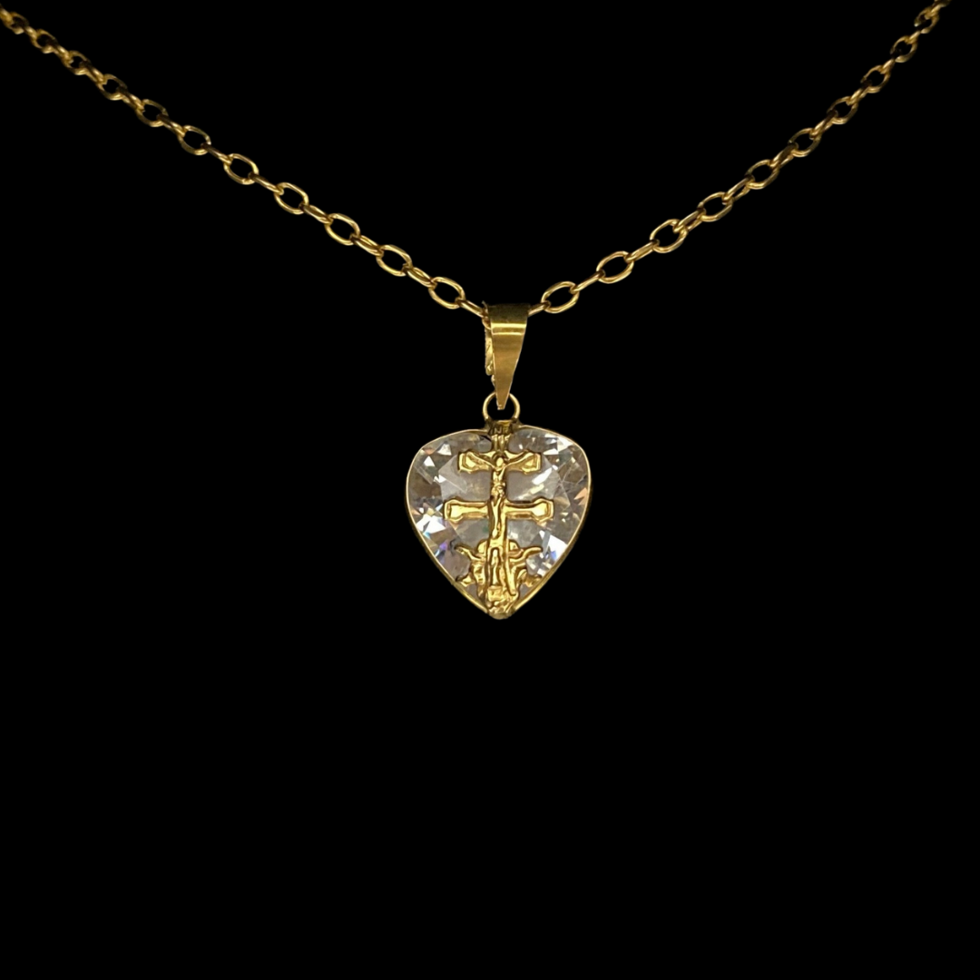 COLGANTE CORAZÓN CIRCONITA Y CRUZ DE CARAVACA - JCG140