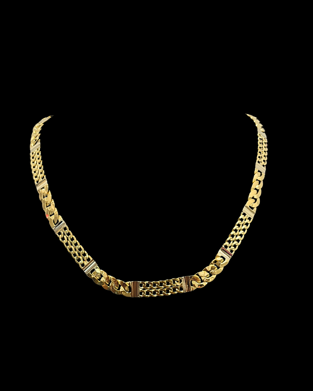 GARGANTILLA BICOLOR ESLABON BARBADO Y CADENA DOBLE EN ORO DE 18KT. 45CM. 35.23GR