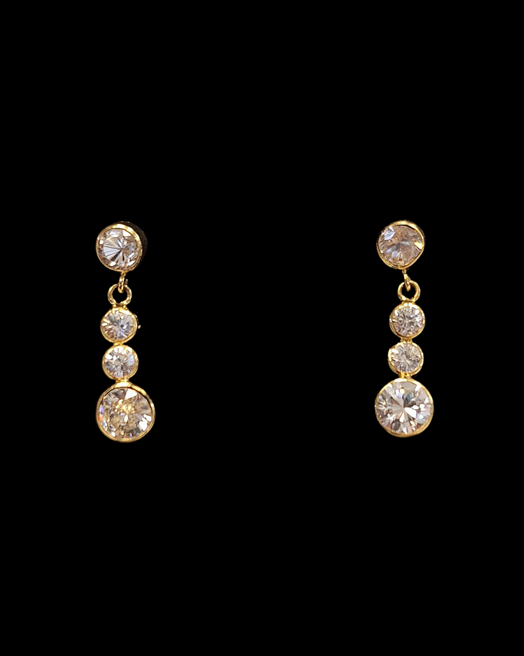 PENDIENTES DISEÑO EN CAIDA CON CIRCONITA EN CORO AMARILLO DE 18KT CON CIERRE CATALAN, 1.9GR