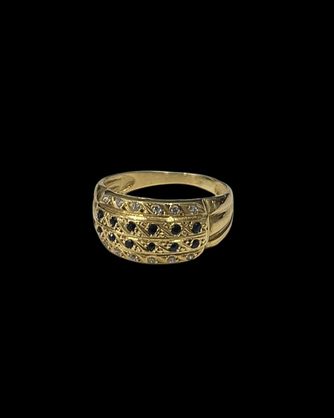SORTIJA ANCHA CON CIRCONITAS BLANCAS Y NEGRAS ORO AMARILLO 18KT 3.43GR TALLA 17