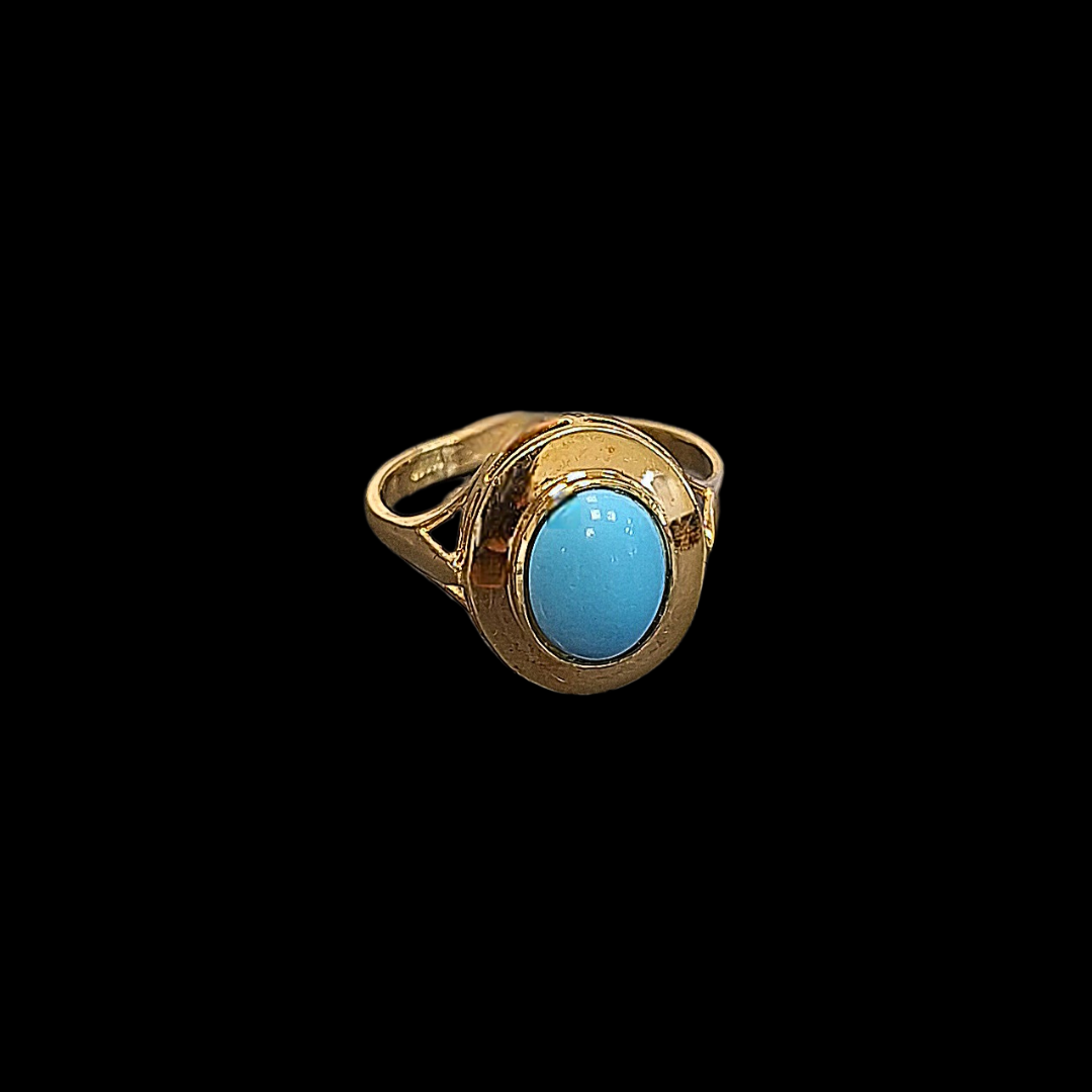 SORTIJA CABUJON TURQUESA EN ORO AMARILLO DE 18KT, TALLA 15, 3.2GR